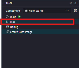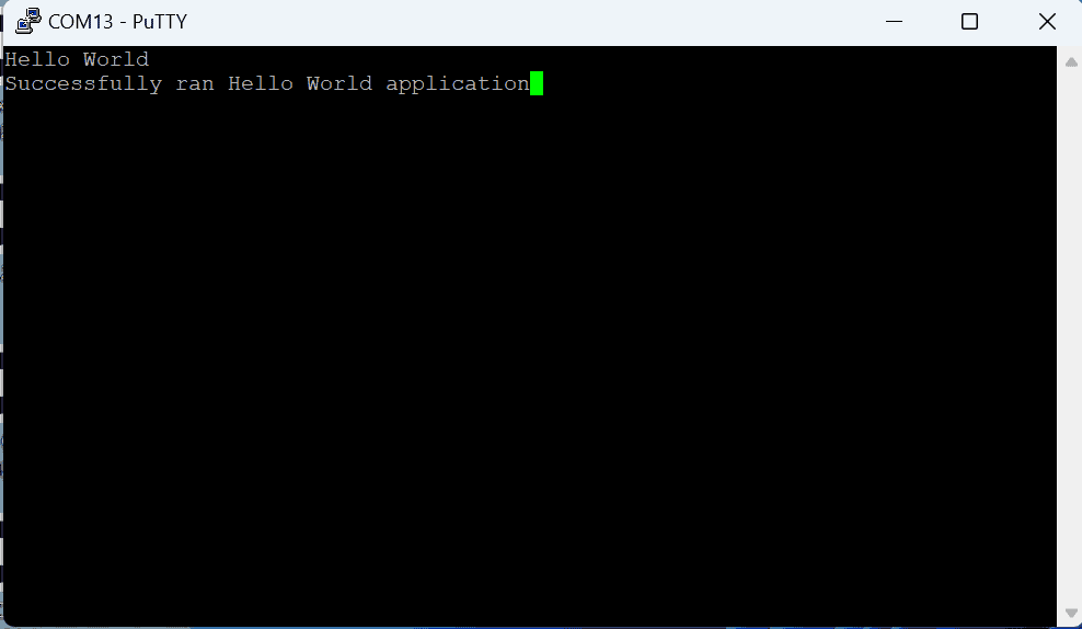 If everything went well, the application running on the board should print “Hello World” over the UART and should be displayed on the Serial Terminal application.