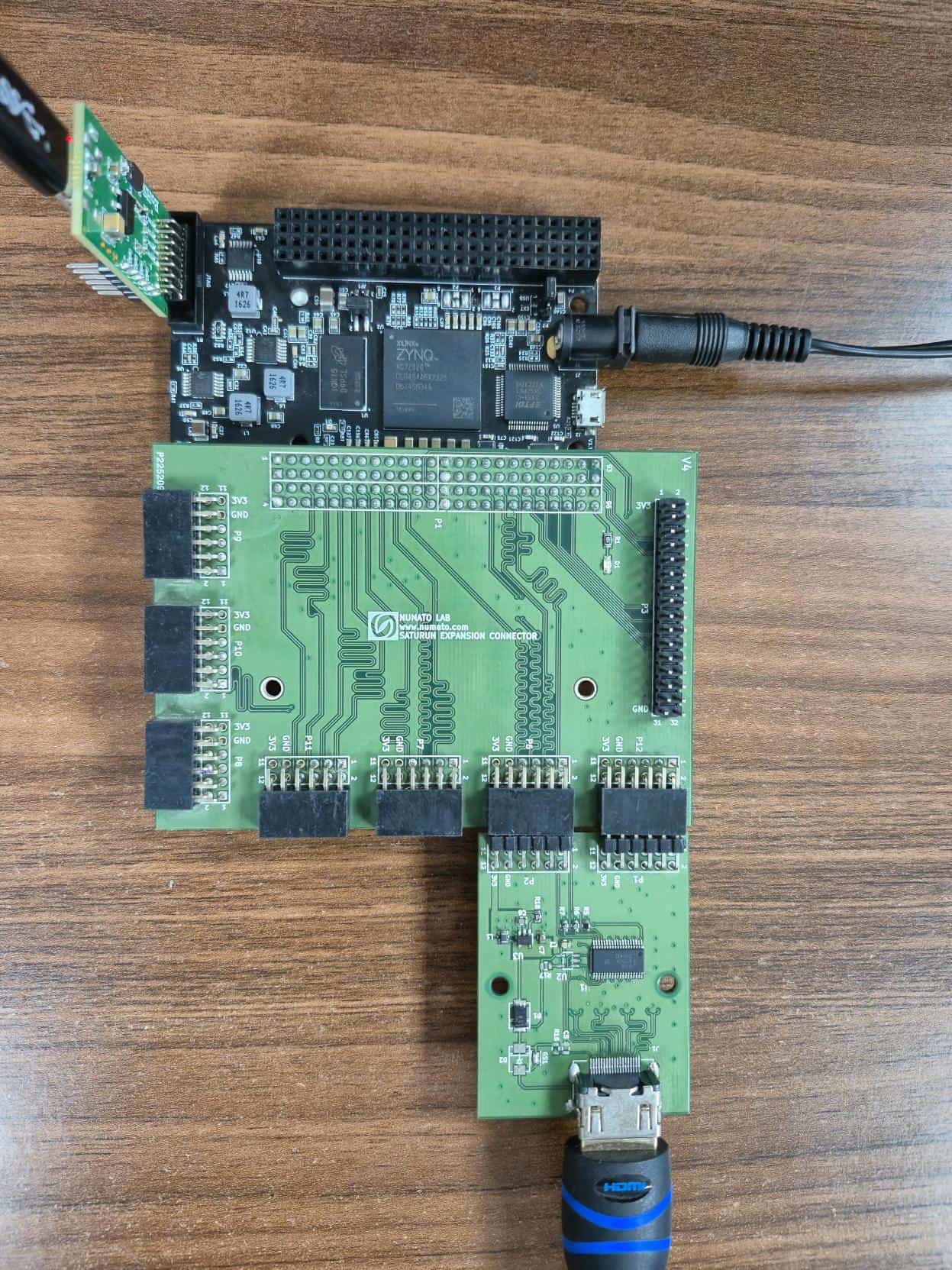 Set up the hardware for testing the design. For this, connect Saturn IO Breakout Module to ‘Header P5’ of Styx. Connect ‘Header P1 & P2’ of HDMI Module to ‘Header P12 & P6’ of Saturn IO Breakout module respectively. HDMI cable between HDMI Expansion module and the monitor. Finally, connect JTAG cable and power supply for Styx.