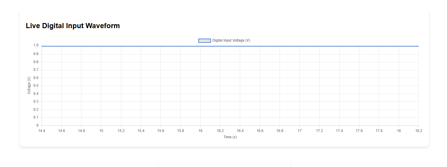 - đ Live Digital Input Waveform Acquisition: The core feature utilizes the Processing System (PS) to achieve precise, high-frequency data sampling from the PL-side AXI GPIO. This raw digital input is streamed to the browser via JSON and rendered as a live, scrolling waveform using the Chart.js library, effectively turning the Zynq into a remote oscilloscope.