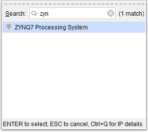 Go to Diagram window, right click and select âAdd IPâ from the popup menu. Search for ZYNQ7 Processing System. Add it to block design by double clicking.