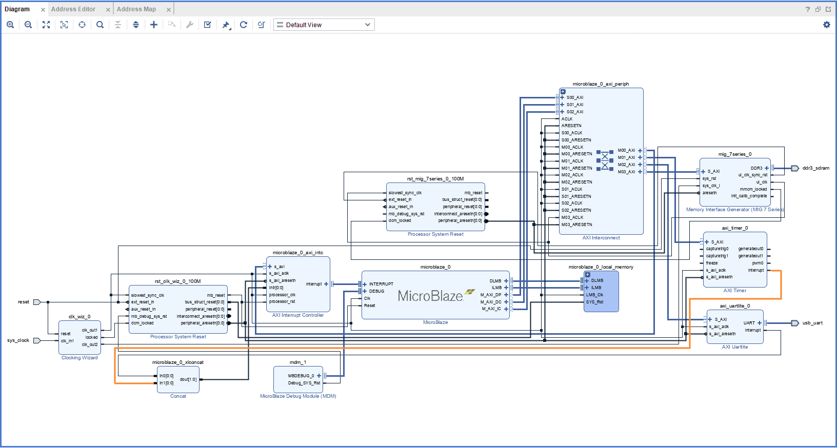 In this article, we will be using Vivado IP Integrator along with Vitis to create a basic “Hello World” project for Mimas A7 FPGA Development Board. The design will contain a Microblaze soft processor and peripherals connected by an AXI bus. MicroBlaze-based embedded design can use either PLB or AXI as the bus system. More information and resources including a datasheet for MicroBlaze can be found on Xilinx’s MicroBlaze page.