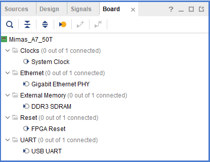Click the Board tab. The default peripherals available for the Mimas A7 board will be displayed.