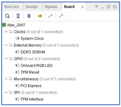 Click the “Board” tab. The default peripherals available for the Aller board will be listed as shown below.